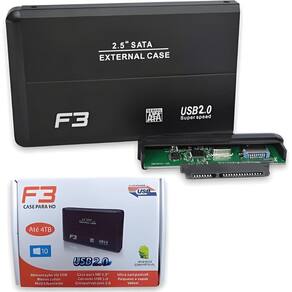Case externa para HD SATA 2,5 com conexão USB 2.0, compatível com unidades de até 4TB. Instalação Plug & Play sem necessidade de ferramentas ou drivers.Capacidade