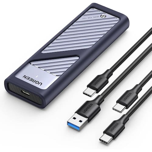Gabinete m.2 nvme o gabinete m.2 nvme ssd se adapta bem a ssds nvme pcie m-key/m+b key de até 4 tb, compatível com tamanhos 2230/2242/2260/2280. 2 cabos fornecidos usb c para usb c e usb c para usb a para atender às suas necessidades em diferentes dispositivos de porta. Observação: novos discos rígidos devem ser formatados e particionados antes do uso. E o disco rígido não está incluído no pacote. Transmissão em alta velocidade o gabinete ssd m2 nvme com interface usb c 3.2 gen 2 suporta taxas de transferência de até 10 gbps. Equipado com chip inteligente jms583 e compatível com os protocolos uasp, trim e smart, este adaptador nvme usb c pode transferir arquivos de 1g em 1 segundo. Compatibilidade universal o gabinete ssd externo é compatível com os sistemas windows,/11/10/8.1/8/7/xp,/linux,/,/os,/android/e/ios, permitindo que você conecte laptops,/desktops e telefones/tablets habilitados para otg via usb-c para acessar seus arquivos diretamente. Melhor dissipação de calor este gabinete nvme m.2 possui revestimento de alumínio rosqueado de alta qualidade, revestimento externo de silicone e almofada térmica integrada, que pode dissipar calor de forma eficaz, proteger o chip e prolongar sua vida útil. observação: durante a operação, uma temperatura de 0c a 45c é normal. Design ideal plug & play, este adaptador m.2 usb c não requer ferramentas. O indicador led branco está presente no gabinete, exibindo o status do gabinete conectado ou não e a atividade do ssd. Sono automático após 15 minutos. Este gabinete m2 nvme pcie é fácil de transportar com seu design compacto e capa de silicone, podendo ser colocado na bolsa para se adaptar a qualquer situação. Dica rápida o disco rígido não está incluído. Não suporta sata ngff. O que posso fazer se a caixa não funcionar 1. Se o seu disco rígido for novo, particione-o antes de usá-lo. 2. Se o seu disco rígido for antigo e não estiver funcionando, faça backup dos seus dados primeiro e depois tente criar uma partição. Como distinguir ssds nvme de ssds ngff 1. Os ssds nvme são rotulados como nvme express ou nvme m.2, e os ssds ngff são rotulados como ata ou sata m.2. 2. A velocidade de leitura e gravação do nvme é superior a 800 mb/s, e a do ngff é inferior a 550 mb/s. Uma pequena dica para este gabinete m.2 durante o uso. Comparado com outras caixas de plástico, a caixa de alumínio dissipa melhor o calor. Capacidade de armazenamento de memória 4 tb Velocidade de transferência de dados 10 gigabits por segundo O pacote vem com um disco rígido Este é um caso, e nenhum ssd ou hdd está incluído no pacote. -marca ugreen -fabricante grupo ugreen limitado -cor prata / cinza -modelo 15511 -material alumínio 12,5 x 4,16 x 1,42 cm; 160 g