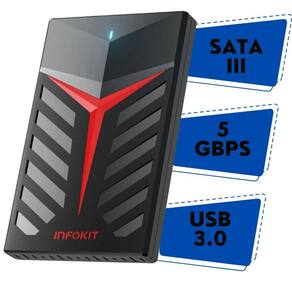 Modelo: ECASE-350. Marca: Infokit. Plug & Play. Conexão: Sata III. Velocidade: Até 5.0 GB/s. USB: 3.0.