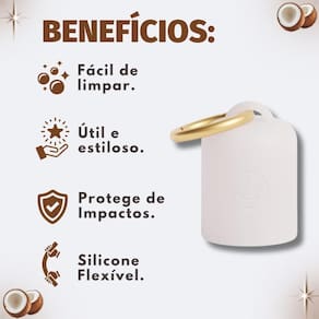 Para utilizar, basta inserir seu lip oil no Case Mari Maria Makeup Coco. Em seguida, utilize a argola dourada para pendurá-lo em chaveiros, bolsas, alças ou cinto, garantindo que seu produto esteja sempre seguro e de fácil acesso.