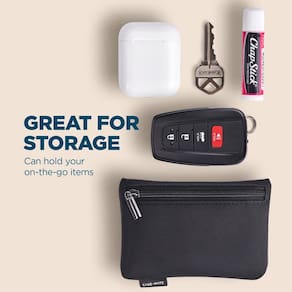 - Possui fechamento com zíper para guardar com segurança cartões, dinheiro, documentos, protetor labial e outros pequenos itens, mantendo-os organizados.