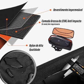 Material Externo: Nylon Reforçado Impermeável em uma cor EXCLUSIVA. Preenchimento: Espuma de Alta Densidade de 5mm. Material Interno: Forro de Poliéster Atoalhado na Cor Cinza. Bolso: Nylon com Elasticidade e Impermeável. Fechamento: Zíper de Alta Resistência.