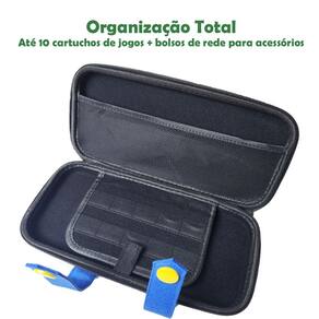 - Mantém seu console sempre protegido - Organiza seus acessórios em um único lugar - Estilo exclusivo inspirado em Luigi, ideal para fãs da franquia Mario - Fácil de transportar na mochila ou na mão
