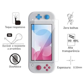 Case Nintendo Switch Lite Preto + Película Vidro + 4 Grips