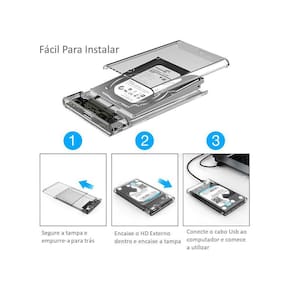 Itens inclusos: . 1 case transparente de hd externo usb 3.0 sata 3 6gbps . 1 cabo usb 3.0