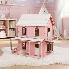 1x Casinha De Boneca Rosa e Branco Em MDF