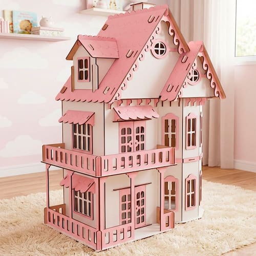 Transforme a brincadeira ou a decoração com esta linda casinha de boneco em miniatura, fabricada em MDF de alta qualidade, nas cores rosa e branco, com acabamento impecável. Ideal para colecionadores, cenários, quartos infantis, maquetes, artesanato e decoração temática