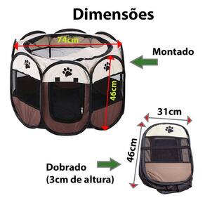 Casinha Cercado Tenda Pet Dobrável Portátil Cachorro Gato Ofereça mais conforto e segurança para seu pet com este prático cercadinho dobrável Ideal para gatos, cães de pequeno e médio porte, coelhos, porquinhos-da-índia e até hamsters, ele é perfeito para momentos de descanso, brincadeiras ou até mesmo viagens. Cores: Marrom e bege Amanho montado: 74 cm diâmetro x 46 cm altura Tamanho dobrado: 46 cm x 31 cm x apenas 3 cm de altura - cabe em qualquer cantinho Principais vantagens: Portátil e leve: Dobra facilmente, ideal para transporte e armazenamento. Versátil: Pode ser em casa, quintal, camping ou até mesmo em viagens. Abertura superior e frontal com zíper: Mais praticidade para interagir com seu pet. Tela respirável em todas as laterais: Ventilação garantida e visibilidade total. Material resistente e durável: Estrutura reforçada e tecido lavável. Raças indicadas exemplos : cães pequenos e médios: Poodle, Shih-tzu, Yorkshire, Maltês, Buldogue Francês, Lhasa Apso, Spitz Alemão Anão , Pug, Dachshund Salsicha , Schnauzer Miniatura. Gatos de todos os portes coelhos e roedores de médio porte Palavras-chave para busca: Cercado pet portátil; cercadinho para cachorro; cercado dobrável para gato; cercadinho coelho; cercado pequeno porte; casinha de cachorro portátil; cercado para roedores; cercadinho para animais; canil dobrável; cercado desmontável para pets; playpen pets; cercado gatos e cães; viveiro portátil.