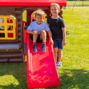 Com Kit de pia (sem vasão de água), fogão e escorredor de pratos para os minis chefes prepararem aquele jantar especial, tabela de basquete para a galerinha marcar uma cesta de 3 pontos e já embarcar em uma aventura entrando no túnel da diversão que leva direto ao escorregador mais legal que existe!