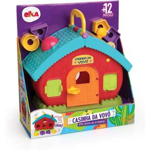 CASINHA DA VOVO COM PORTA E CHAVE, FORMAS PARA ENCAIXAR, TELHADO QUE ABRE E FECHA A JANELINHA COM SURPRESA. OLHA O LOBO MAL.AS CORES DOS ACESSORIOS DO PRODUTO PODEM VARIAR.