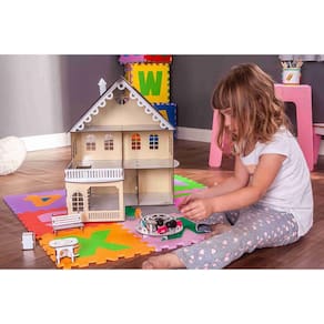 Com dimensões aproximadas de 42 x 42 x 52 cm largura x comprimento x altura , a Casa de Bonecas Mini Decorativa Modelo Cindy Crem é composta por diversas peças que se encaixam perfeitamente devido à precisão de corte do MDF. Vale ressaltar que esse produto não acompanha móveis.