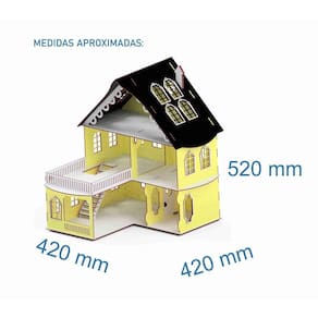 Com dimensões aproximadas de 42 x 42 x 52 cm largura x comprimento x altura , a Casa de Bonecas Mini Decorativa Modelo Cindy Crem é composta por diversas peças que se encaixam perfeitamente devido à precisão de corte do MDF. Vale ressaltar que esse produto não acompanha móveis.