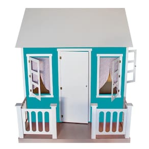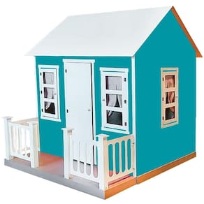 Casinha De Brinquedo Com Cercado E Cortinas Azul/branco - Criança Feliz