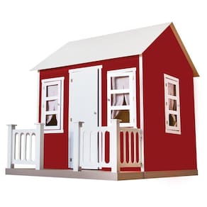 Casinha De Brinquedo Com Cercado E Cortinas Vermelho/branco - Criança Feliz