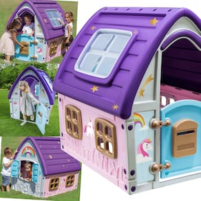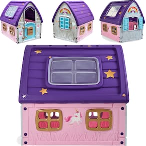 A Casinha de Brinquedo Unicorn Grand House da Zippy Toys está disponível nas cores rosa e lilás, com detalhes encantadores que trazem o mundo mágico do unicórnio para a diversão das crianças!