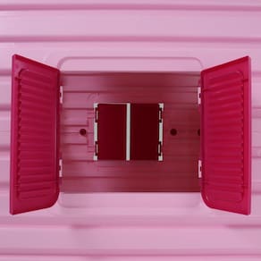 Especificações técnicas Estrutura: PP (Polipropileno) Tamanho Porta: 93 cm x 42,5 cm (AxL) Cor: Rosa e Branco Modelo: Casinha Infantil Abre portas: Sim Dimensões aproximadas montado (C x L x A): 102 cm x 90 cm x 109 cm Idade recomendada: 30 Kg Certificado INMETRO: 005531/2019 Garantia: 3 Meses