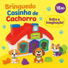 Casinha de Cachorro Brinquedo Infantil Didático Sensorial Casinha de Cachorro Brinquedo Infantil Didático Sensorial ===================================== Brinquedo perfeito para as crianças que amam cuidar dos animaizinhos e soltar a imaginação Com um design super fofo e cheio de detalhes, ela transforma o brincar em uma experiência completa de afeto, aprendizado e criatividade. Mais do que um brinquedo, é uma forma divertida de ensinar sobre responsabilidade, cuidado com os animais e empatia desde cedo. A criançada vai amar montar cenários, inventar histórias e cuidar dos seus bichinhos como verdadeiros tutores Design interativo e encantador e com detalhes pensados para imitar o mundo real dos pets, incluindo acessórios e espaço para brincadeiras, além de ajudar a desenvolver empatia, coordenação motora fina, criatividade e habilidades sociais. Visual vibrante que chama a atenção e deixa a brincadeira ainda mais divertida. ===================================== Contém: 01 Casinha 03 Peças de Encaixe Especificações: - Material: Plástico PP e Adesivo - Medida: 19cm x 09cm x 29cm - REGISTRO INMETRO: 008666/2021 - Indicado para crianças acima de 1 anos e 6 meses - Cor enviada de forma aleatória conforme disponibilidade em ===================================== Devido à diferença entre monitores e iluminação diferentes, pode haver variação na tonalidade apresentada no anúncio. Medidas muito aproximadas.