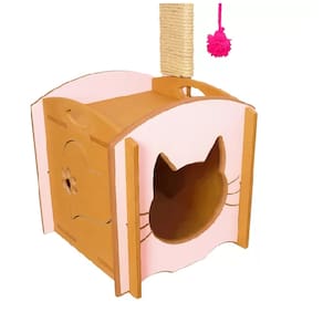 Casinha de gato com arranhador de encaixe Rosa Ref.AG010R - VivaLigna
