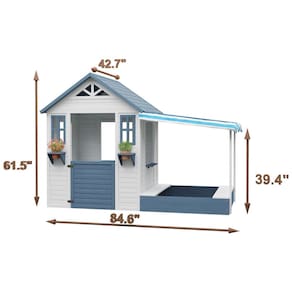 Esta casa de brinquedo é feita de madeira premium e tratada com tinta à base de água, garantindo durabilidade e segurança para as crianças. Com uma caixa de areia funcional e duas caixas de plantio, ela apresenta um design esteticamente agradável que incentiva brincadeiras imaginativas e oferece horas de diversão ao ar livre. Com dimensões de 84,6 cm de comprimento, 38,8 cm de profundidade e 61,5 cm de altura, esta casa é uma adição atraente para pátios, decks, gramados, jardins e quintais. Os cantos são lisos e a superfície é polida, eliminando rebarbas ou pontas afiadas que possam causar acidentes. Este brinquedo é ideal para ajudar seu filho a aprender a interagir, explorar e brincar de faz de conta, promovendo o desenvolvimento de habilidades cognitivas e sociais. Com esta casa de brinquedo, você passará menos tempo na montagem e mais tempo aproveitando momentos de diversão com seus filhos.