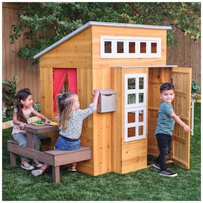 A KidKraft Modern Outdoor Playhouse é uma opção elegante e repleta de recursos, oferecendo às crianças a chance de explorar um mundo imaginário sem sair de casa. Equipado com uma cozinha embutida, este espaço permite que os pequenos finjam preparar piqueniques deliciosos e sirvam seus amigos na mesa de piquenique anexada. Além disso, a caixa de correio funcional e o quadro negro ampliam as oportunidades para brincadeiras criativas. Feita com painéis de madeira reforçados e pré-montados, a casa de brinquedo é projetada para evitar desgaste e reduzir o tempo de montagem. É perfeita para horas de faz de conta e é um dos projetos DIY mais populares. O Modern Outdoor Playhouse é ideal para iniciantes e inclui uma caixa de correio com bandeira, uma porta da frente que abre e fecha e painéis de madeira resistentes à água, garantindo durabilidade e diversão duradoura.
