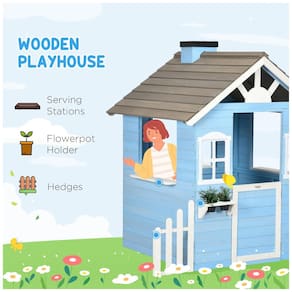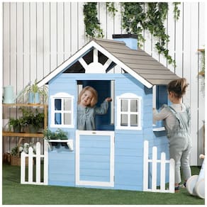 A Cozy Cottage é uma casinha externa feita de madeira de abeto resistente, projetada para que seus filhos possam brincar de casinha com segurança. Ela possui uma entrada frontal de metade do tamanho, duas sebes laterais, janelas retrô, postos de serviço e vasos de flores. Além disso, a inclinação do telhado permite que a chuva escorra em vez de encharcar a madeira, proporcionando sombra para seu filho.