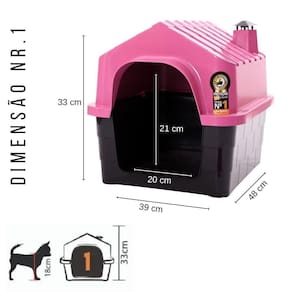 A casinha contém chaminé para entrada e saída de ar, eliminando possíveis odores, o telhado tem tratamento UV que protege o pet de raios ultravioletas.