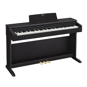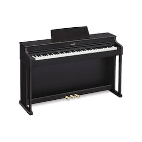 Recursos Tecnologia de som Reprodução natural inigualável de expressiva potência e ressonância de um piano acústico Sistema de som multidimensional Morphing AiR Os recursos do novíssimo Sistema de som multidimensional Morphing AiR da CASIO refletem toda a atenção aos detalhes na expressão de timbres valiosos e ressonantes inerentes ao piano. A capacidade de memória instalada foi expandida para atingir maior duração das amostras e muito mais qualidade dos dados de waveform. As mudanças temporais de timbre que geram um som que se espera ouvir apenas de um piano, a começar pelo som inicial, seguindo por uma bela extensão até que o som levemente se esvaia, são naturalmente reproduzidas. AiR = Acoustic and Intelligent Resonator Seleção entre dois sons de piano de cauda lendários Os sons instalados de dois pianos de cauda mundialmente renomados são separadamente selecionáveis, dependendo do gênero da música que está sendo tocada e do ambiente de desempenho. A seleção direta está habilitada. Um instrumento superior para performances reverberantes, poderosas e intensas. Reproduz os sons do piano de cauda clássico, desde timbres delicados e leves até tons fortes e marcantes, dependendo do peso das combinações de teclas. PIADO DE CAUDA 1 Esta é a escolha correta para performances luxuosas e brilhantes. Mostra sua presença com sons nítidos e diretos, mesmo quando é tocado em uma banda. Sua tonalidade é adequada para jazz e música pop. PIADO DE CAUDA 2 Sistema do teclado Sensação natural de tocar que se aproxima de um Piano de Cauda Toque firme que transforma os pensamentos do músico em sons Teclado com sensor triplo e ação de martelo em escala II, com intervalo de som exclusivo de um piano de cauda A diferença entre as estruturas de som de um piano de cauda e de um piano digital aparecem no intervalo, desde o momento em que o instrumento é tocado até quando o som é ouvido. O novo Teclado com sensor triplo e ação de martelo em escala II responde ao incorporar um sistema com três sensores que detectam o toque sequencial das teclas. Teclas que imitam ébano e marfim com excelente adaptação para as pontas dos dedos, proporcionando mais facilidade As teclas que imitam ébano e marfim propiciam a elegante sensação e textura do suave toque do teclado de um piano de cauda. O acabamento talhado e minuciosamente detalhado da superfície impede que o dedo escorregue em decorrência de suor, proporcionando a sensação de uma perfeita adequação para as pontas dos dedos, mesmo ao tocar por períodos prolongados. Evolução sem precedentes do piano digital Ressonância do abafador obtendo uma ressonância naturalmente mais bela do que a de um pedal A belíssima e intensa ressonância resultante do uso de um pedal abafador também é naturalmente reproduzida por um simulador estéreo instalado nas 88 teclas, conceito que difere da reprodução simulada convencional que emprega processamento de efeitos. A atenção aos detalhes vai tão longe que simula a ressonância criada pela elevação dos próprios abafadores quando o pedal é pressionado. Apresentação de concerto Gravações de dados de áudio de alta qualidade de 10 apresentações de orquestras ao vivo são instaladas. Os pianistas podem tocar juntamente com as gravações para desfrutar da sensação de participar de uma apresentação magnífica. Recursos versáteis 22 timbres de alta qualidade, incluindo amostras de timbres estéreos de pianos de cauda Efeitos digitais: reverberação (4 tipos), coro (4 tipos), brilho, DSP (predefinido para alguns timbres) Conexão ao aplicativo (disponível em novembro de 2017) Recurso para lições que usa 60 músicas da Biblioteca de músicas e mais 10 carregadas pelo usuário O modo Dueto permite que duas pessoas toquem no mesmo intervalo Gravador MIDI: 2 trilhas x 1 canção, aproximadamente 5.000 notas no total Botão de PIANO DE CAUDA 1, botão de PIANO DE CAUDA 2 Tampa de teclado deslizante Desligamento automático