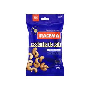Castanha de Caju torrada e salgada Iracema. Peso total da embalagem 30 gramas.
