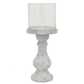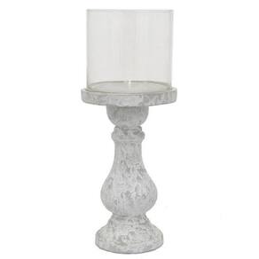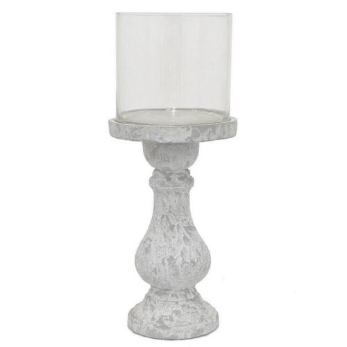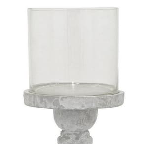 Castiçal Benjara Kris com tampo de vidro Hurricane, cerâmica branca cinza de 7 polegadas
