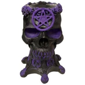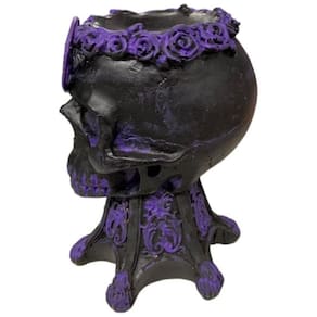Castiçal Crânio Wicca Rosa Caveira Resina - Escolha o Modelo Cor: Preto Pentagrama 13cm Castiçal Crânio Wicca Rosa Caveira Resina - Escolha o Modelo