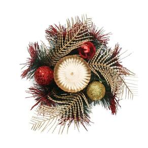 Castiçal Natal Decor Bolas Folhagens Dourado e Vermelho 15cm