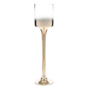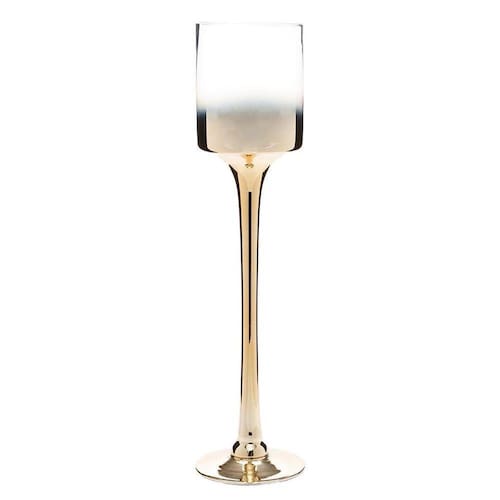 Ficha técnica Comprimento: 12 cm Largura: 12 cm Altura: 50 cm Cor: Dourado Material: Vidro