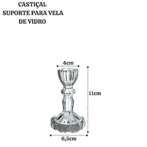 Informações Técnicas: Composição: Vidro Sodo Cálcico. Altura: 11cm. Diâmetro da base: 6,5cm. Diâmetro da borda superior: 4cm. Diâmetro onde coloca vela: 2cm. Peso: 155gramas. Validade: Indeterminada.