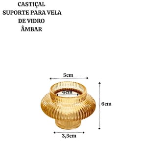 Informações Técnicas: Composição: Vidro. Altura: 6cm. Diâmetro da parte meio: 6cm. Diâmetro da base: 3,8cm. Diâmetro da borda: 5,2cm Diâmetro onde coloca a vela: 4,5cm. Peso: 194 gramas.