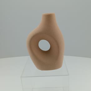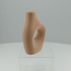 Altura: 17,8 cm Largura: 12 cm Profundidade: 5,5 cm Espessura: ,7 cm Peso: 0,33 Kg Diâmetro da Base: 8,6 cm Diâmetro do Topo: 2,4 cm Material: Cerâmica Cor: Bege