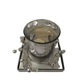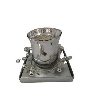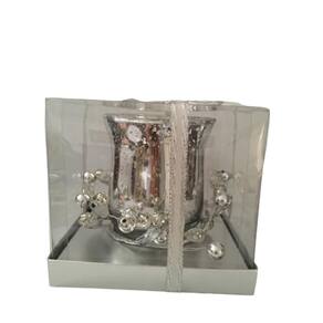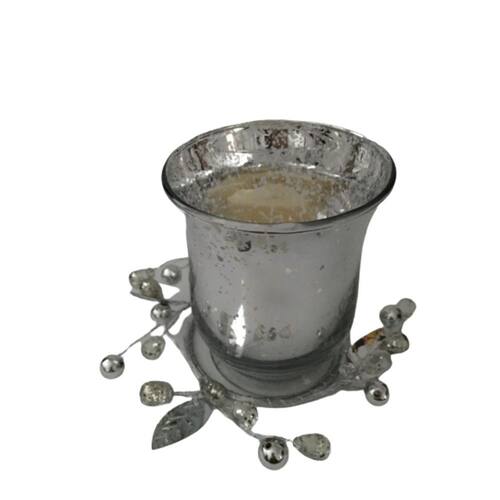 Contém 1 Castiçal em Vidro Prata e arranjo, acompanha vela em Led