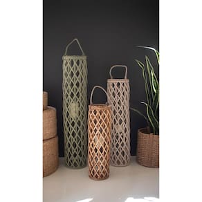 Castiçal KALALOU Conjunto de três lanternas de salgueiro com vidro