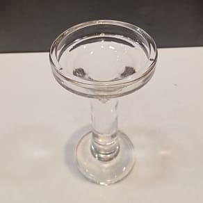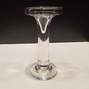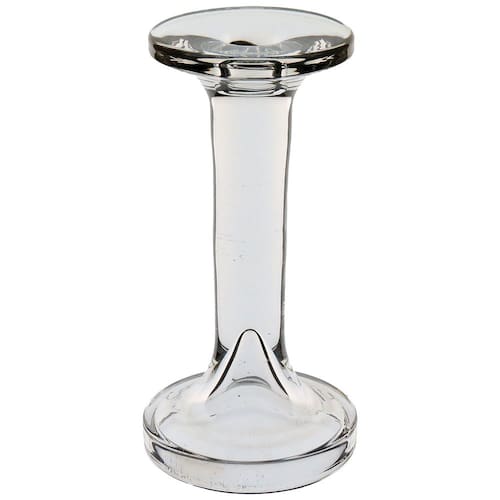 CASTIÇAL Altura: 17,8 cm Largura: 9 cm Profundidade: 9 cm Peso: 0,50 Kg Diâmetro da Base: 8 cm Diâmetro do Corpo: 3 cm Diâmetro do Topo: 3 cm Material: Vidro Cor: Transparente