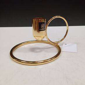 CASTIÇAL Altura: 6,5 cm Largura: 12 cm Profundidade: 12 cm Peso: 0,11 Kg Diâmetro da Base: 9,9 cm Diâmetro do Topo: 2,3 cm Material: Metal Cor: Dourado