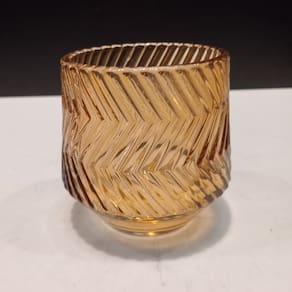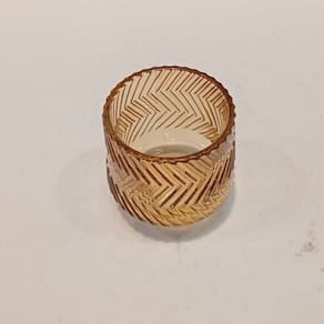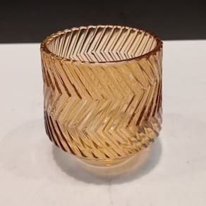 CASTIÇAL Altura: 8 cm Largura: 7,5 cm Profundidade: 7,5 cm Espessura: ,3 cm Peso: 0,28 Kg Diâmetro da Base: 5 cm Diâmetro do Topo: 5,5 cm Material: Vidro Cor: Marrom