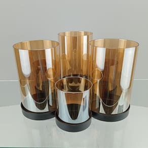 Altura: 16,3 cm Largura: 28,2 cm Profundidade: 26 cm Espessura: ,2 cm Peso: 1,60 Kg Material: Metal/Vidro Cor: Âmbar