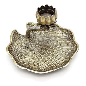 Castiçal Suporte De Vela Dourado Indiano Folha 20x20 Cor: Dourado Este lindo castiçal decorativo chama a atenção para o seu interior.