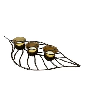 Se você está pensando em dar uma repaginada na sua decoração esse castiçal em formato de folha é a peça perfeita para sua decoração dando mais charme sua casa, festa ou evento. Material: Vidro e metal Medidas: Altura: 6cm Comprimento: 45cm Profundidade: 20cm Diâmetro do recipiente: 7cm Peso: 615g Cor: Preto e amarelo Garantia: 6 meses