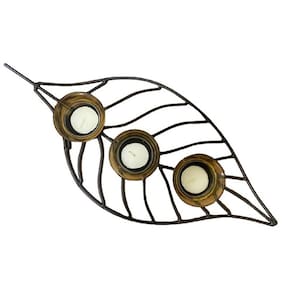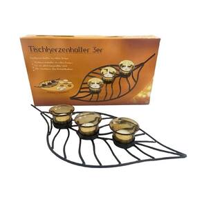 Castiçal Triplo Folha Centro De Mesa Metal Decorativo Preto