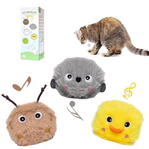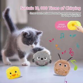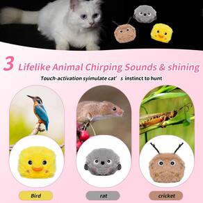 - Chirping Balls: este brinquedo contém 3 bolas de pelúcia fofas de 2,2 polegadas. Chilreios vívidos de animais quando tocados (som de pássaros, ratos e grilos). Os brinquedos para gatos emitem sons realistas de chilrear de animais quando a brincadeira começa e a perseguição! E as baterias embutidas fazem com que cada bola de brinquedo para gatos dure 10.000 vezes cantando.