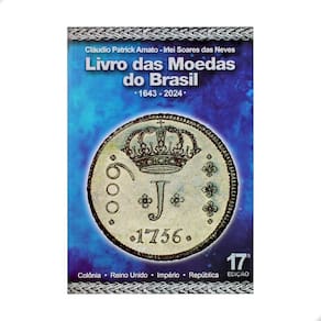 O Catálogo de Moedas do Brasil 17ª edição é o livro mais procurado e utilizado por colecionadores de moedas nacionais para organizar, precificar e negociar suas peças.Se pudermos dizer que existe um livro de cabeceira na numismática, seria este.Este é o catálogo mais longevo da numismática nacional. Sua primeira edição foi em 1978, publicação do renomado autor e numismata Arnaldo Russo.Muitos anos depois, em 2001, os autores Claudio Amato e Irlei Soares adquiriam os direitos autorais do catálogo e deram continuidade com suas publicações, que acontecem de 3 em 3 anos em média.QUAIS SÃO AS NOVIDADES DESSA EDIÇÃO?- Imagens coloridas!As publicações anteriores eram em preto e branco. Nesta edição de 2024 todas as moedas são em cores reais.- Novas Moedas!Algumas moedas recentes como a comemorativa de 25 anos do Plano Real foram adicionadas no catálogo.- Melhor qualidade!Agora em papel couche.- Moedas do Brasil de 1643 a 2024O QUE VOCÊ ENCONTRA NO CATÁLOGO?- Contém preço de todas as Moedas do Brasil.- Contém a variação de preço de acordo com estado de conservação de cada peça.- Tiragem das Moedas.- Moedas agrupadas por metal, período e ano.- Imagem colorida da peça em tamanho real- Teor de pureza de prata e ouro para moedas do respectivos metais.INFORMAÇÕES TÉCNICAS:Medida: 21x15cmPáginas: 464Capa BrochuraPapel Couche Marca: Caravelas Coleções