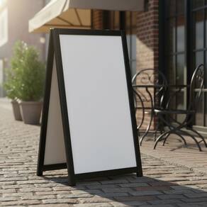 Destaque promoções, cardápios e mensagens com elegância e praticidade. O Cavalete de Calçada Standard é ideal para bares, restaurantes, cafeterias, padarias, lanchonetes, supermercados, açougues e comércios em geral.