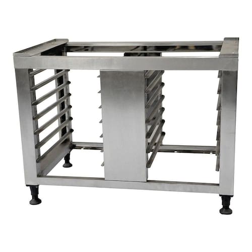 Cavalete de sustentação totalmente fabricado em aço inoxidável, com pés de borracha super-resistentes e antiderrapantes.