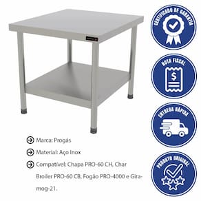 - O Cavalete Progás PRO-60 Inox é a base perfeita para chapas e equipamentos industriais. - Feito em aço inox de alta qualidade, oferece durabilidade, resistência e segurança para o seu negócio. - Com design robusto e fácil montagem, é ideal para cozinhas profissionais, garantindo máxima eficiência e organização.