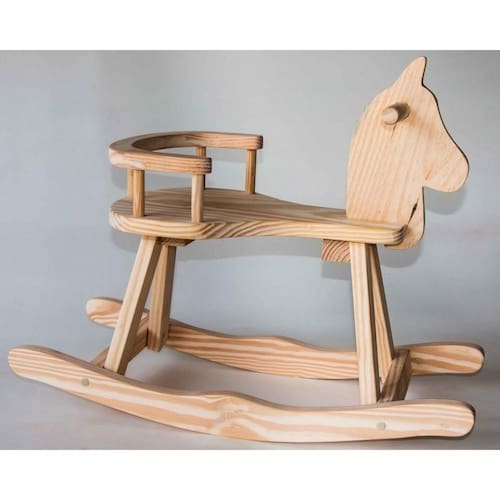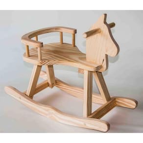 Cavalinho de Balanço Mirim O cavalinho de balanço mirim é super fofo e é perfeito para decorar o quarto do bebê e divertir seu a filho a . Construído em madeira maciça Pinus. Acabamento com lixa fina. É indicada especialmente para crianças pequenas pela sua alta estabilidade, tamanho e um encosto segurando a criança e evitando quedas acidentais. Indicado para crianças com idade acima de 1 ano. Medidas: L x P x A: 27 cm x 65 cm x 53 cm - Altura do assento 30 cm. Peso: 2,2 kg.